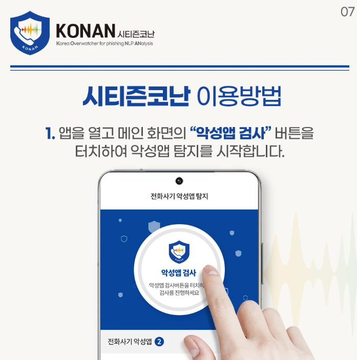 시티즌 코난은 단순한 보안 앱이 아닌, 보이스피싱에 특화된 다양한 탐지 기능을 포함하고 있습니다.