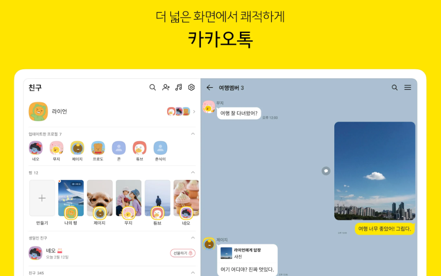 한 계정으로 스마트폰과 PC에서 동시에 로그인할 수 있어, 이동 중이거나 외부에서도 대화를 이어갈 수 있습니다.