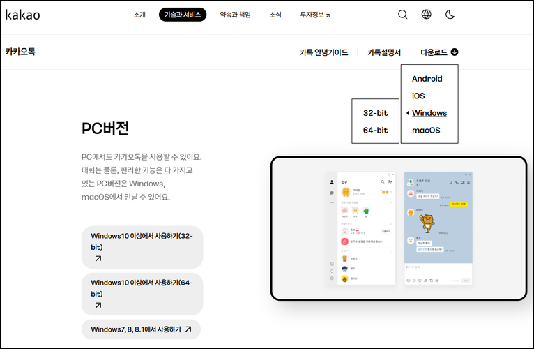 - 카카오톡 PC버전 다운로드 바로가기