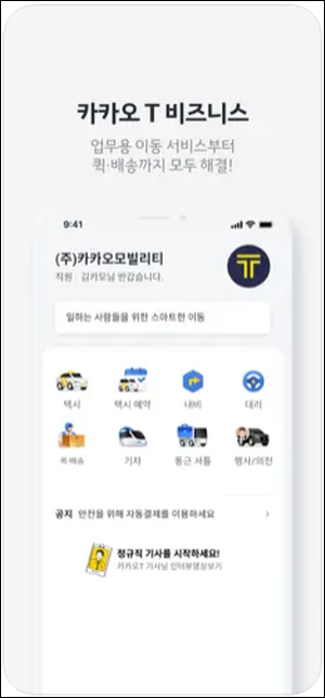 설치가 완료되면, 간단한 회원가입 절차를 거쳐 바로 택시 호출 기능을 사용할 수 있습니다.