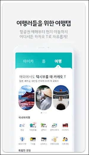 이처럼 카카오택시는 다양한 교통수단과 연계되어 스마트한 이동 환경을 제공합니다. 특히 '마이카' 탭과 '여행' 탭은 차량 소유자와 장거리 여행객 모두에게 유용한 기능을 제공합니다.